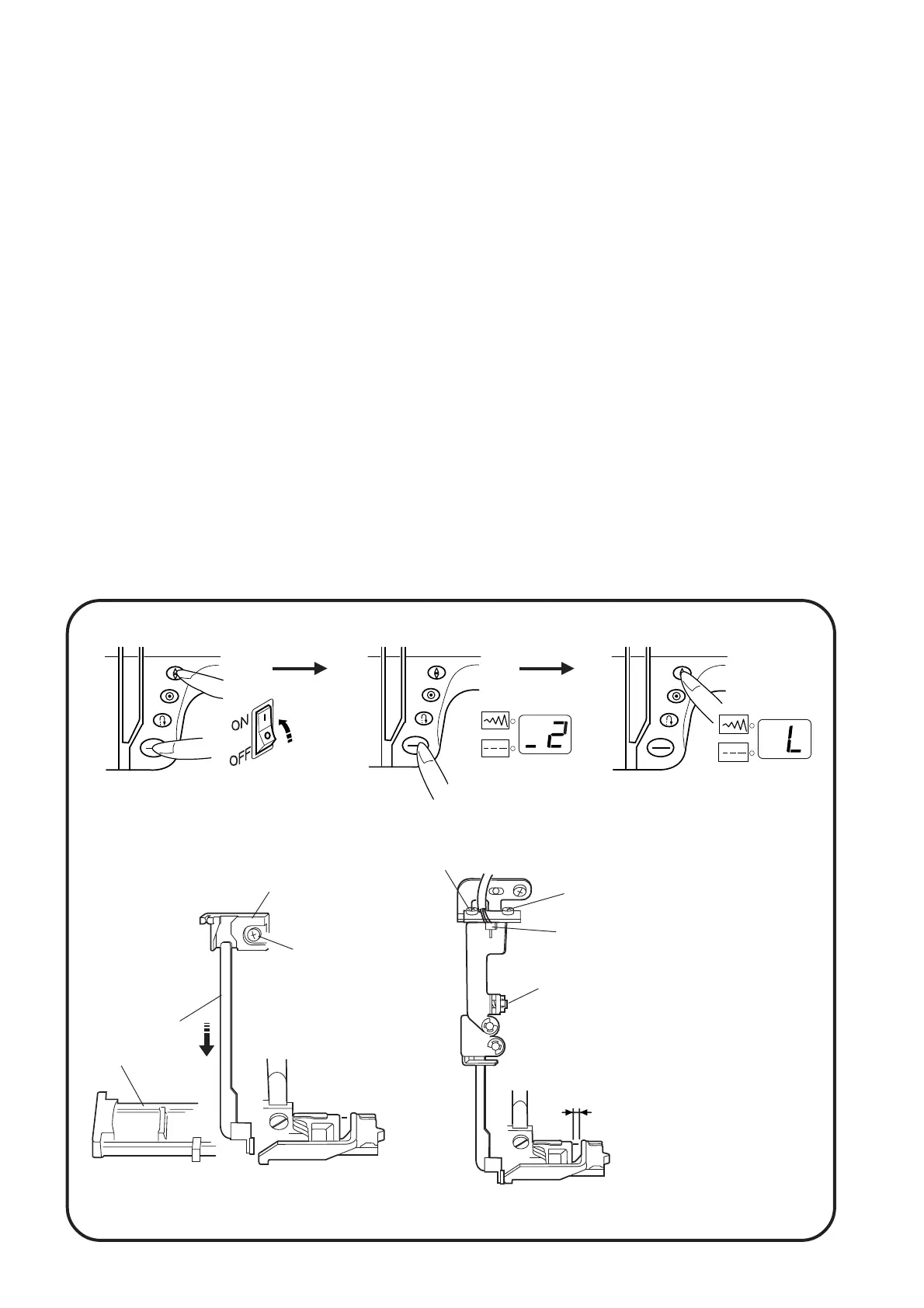 8. When the gap of the buttonhole foot is 1.4 mm, LED should display " H ". When the gap is 1.8 mm, the