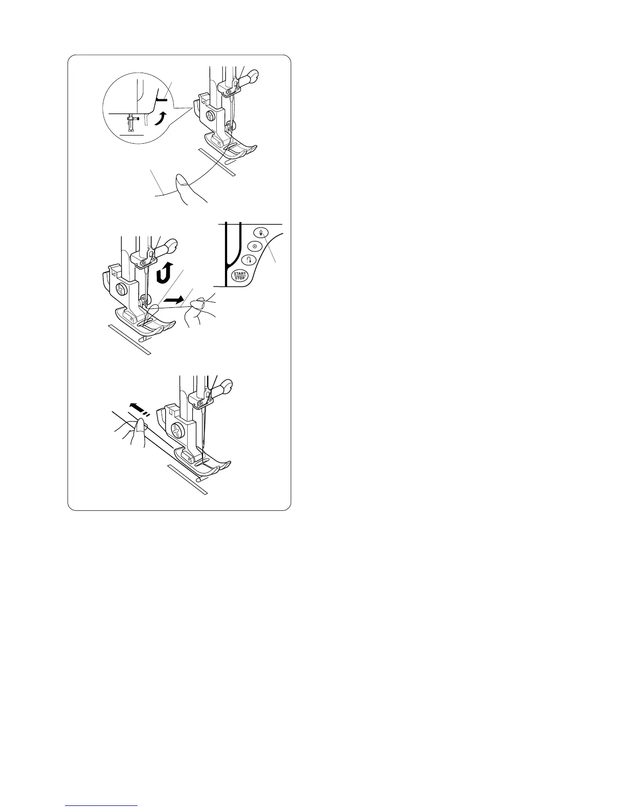 x Press the up/down needle button twice to pick up