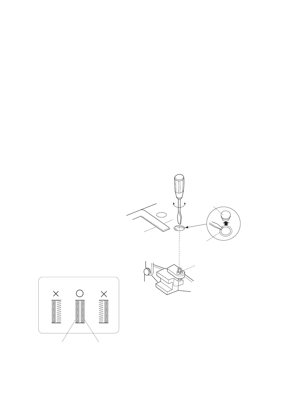 2. Turn the adjusting screw in the direction of (C) in case of (A) (right stitches are rough), or in the direction of (D)