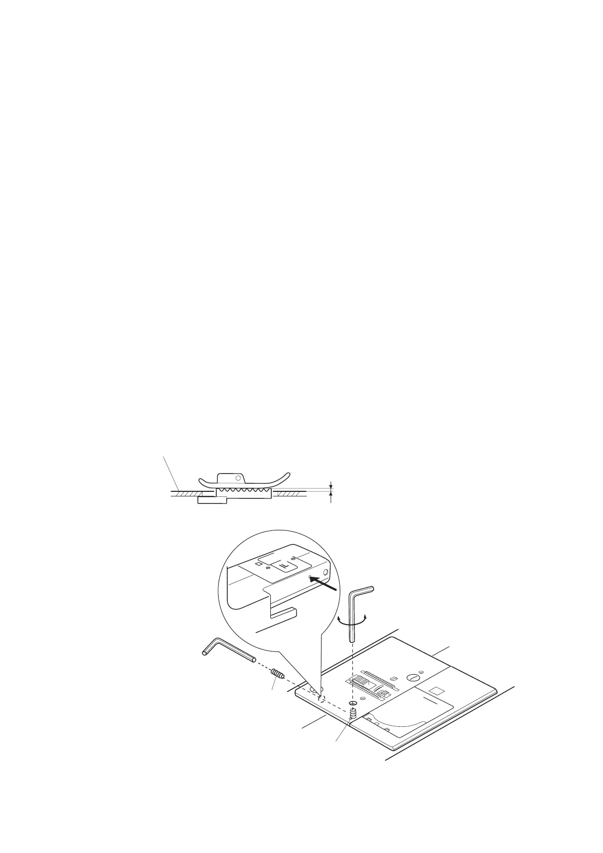 Thedistancebetweenthefeeddogandtheuppersurfaceoftheneedleplateshouldbe0.80to0.95mm.