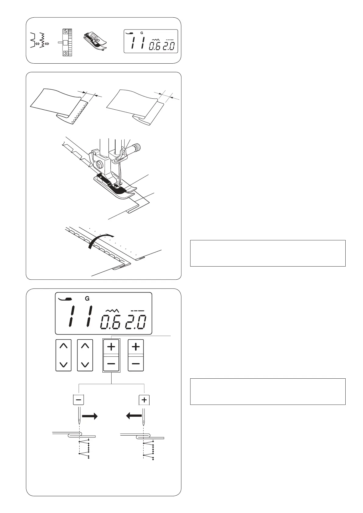 Press the “+” sign on the stitch width adjusting key q to
