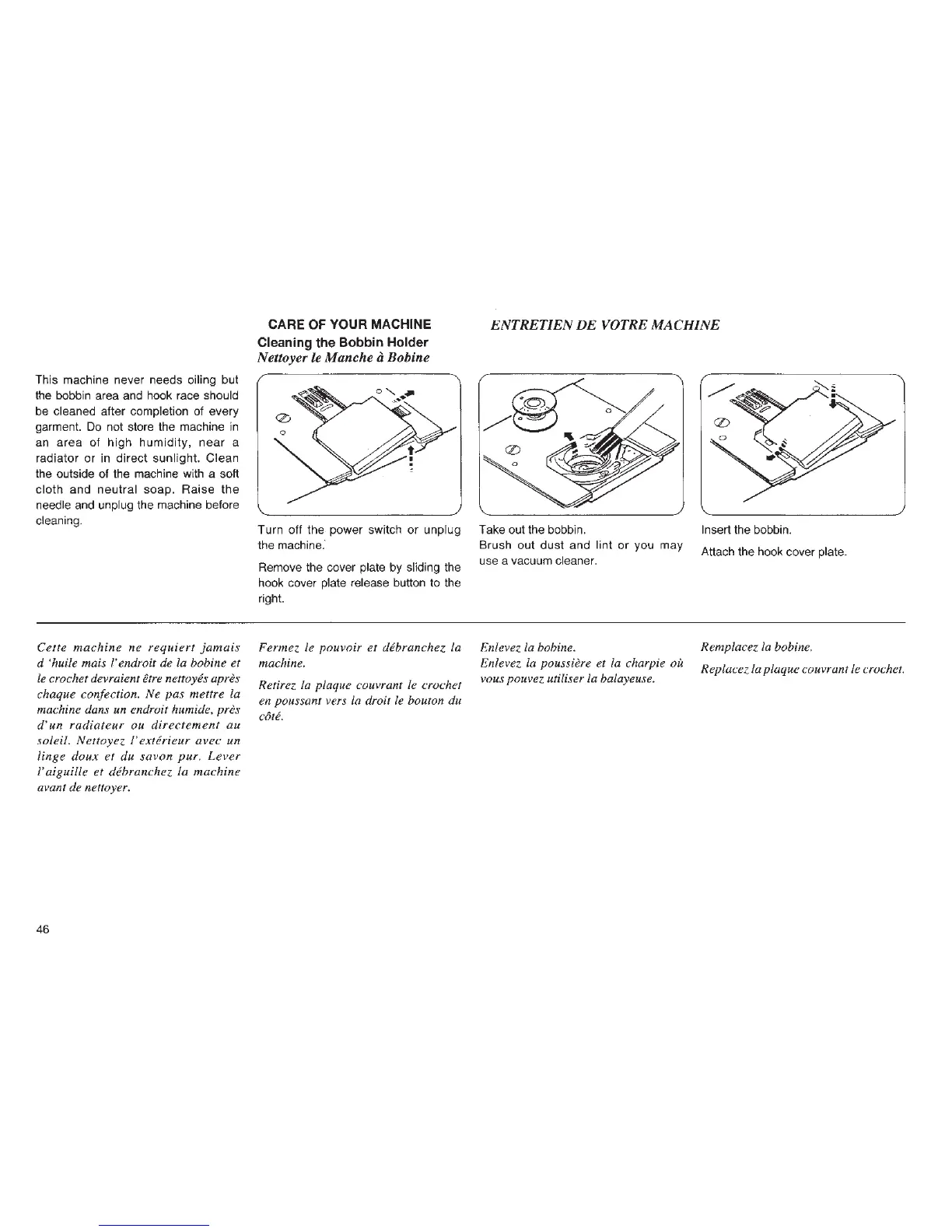 Janome ME 4023 - Machine Care and Maintenance; Cleaning Bobbin Holder