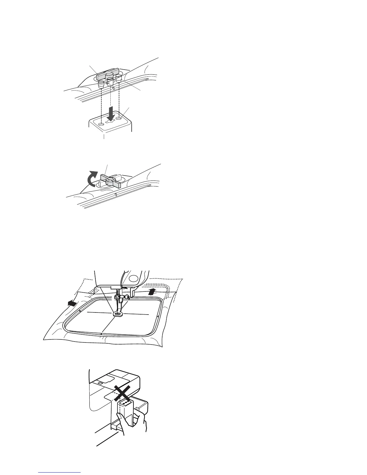Attach the hoop by fitting the pins into the carriage