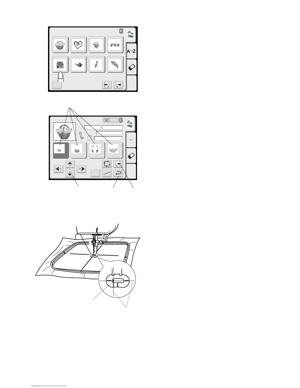 Touch Screen will show the stitch image and each color