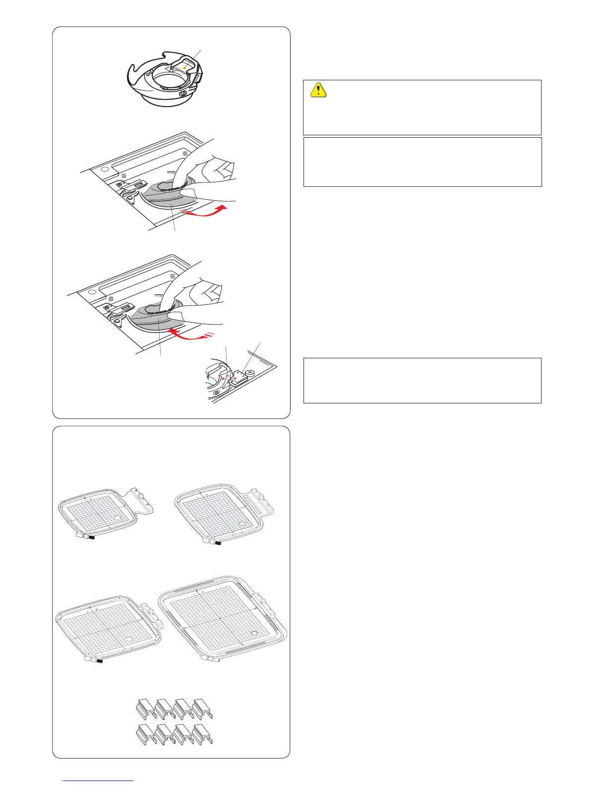 x Insert the special bobbin holder into the hook race.