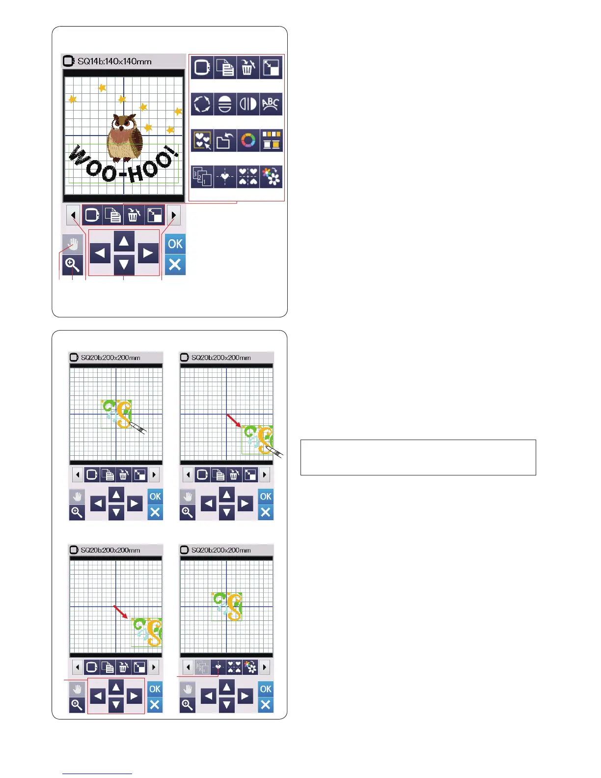To move the embroidery pattern in the editing window,