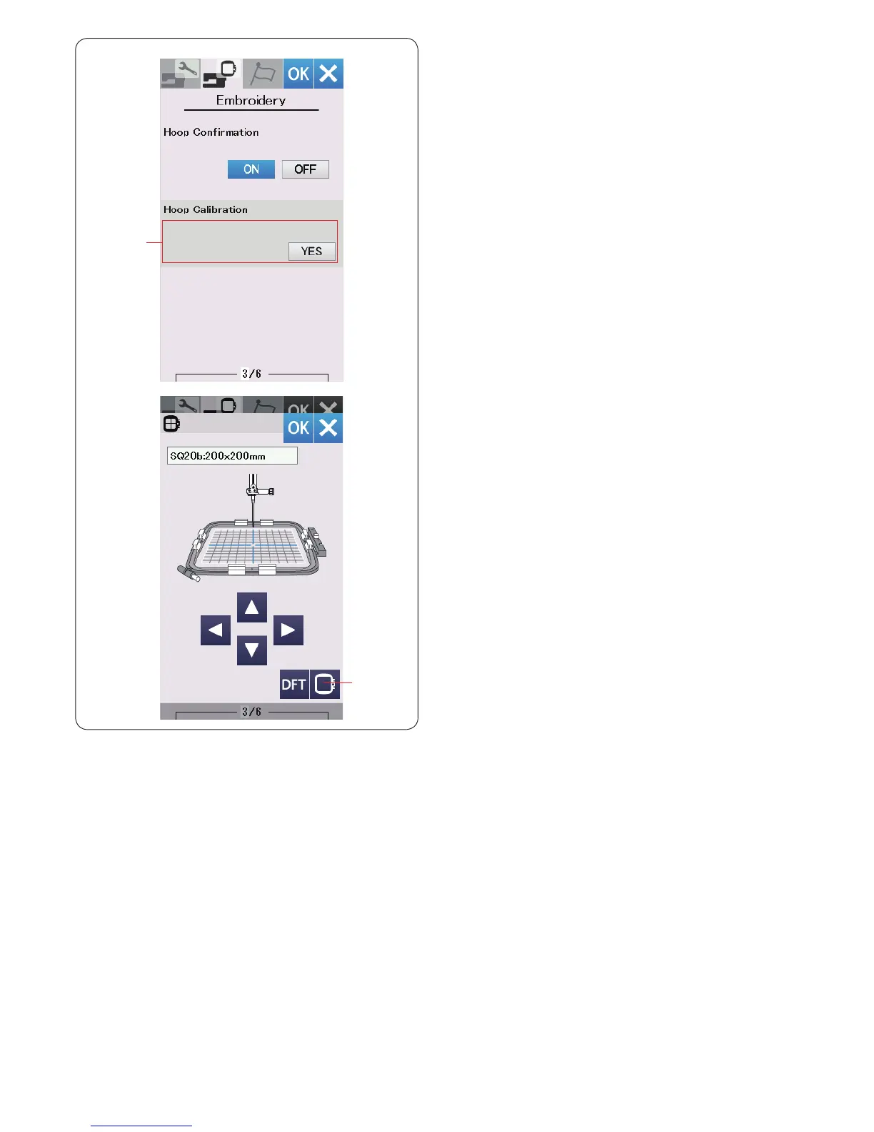 Adjust the hoop position by pressing the jog keys so that
