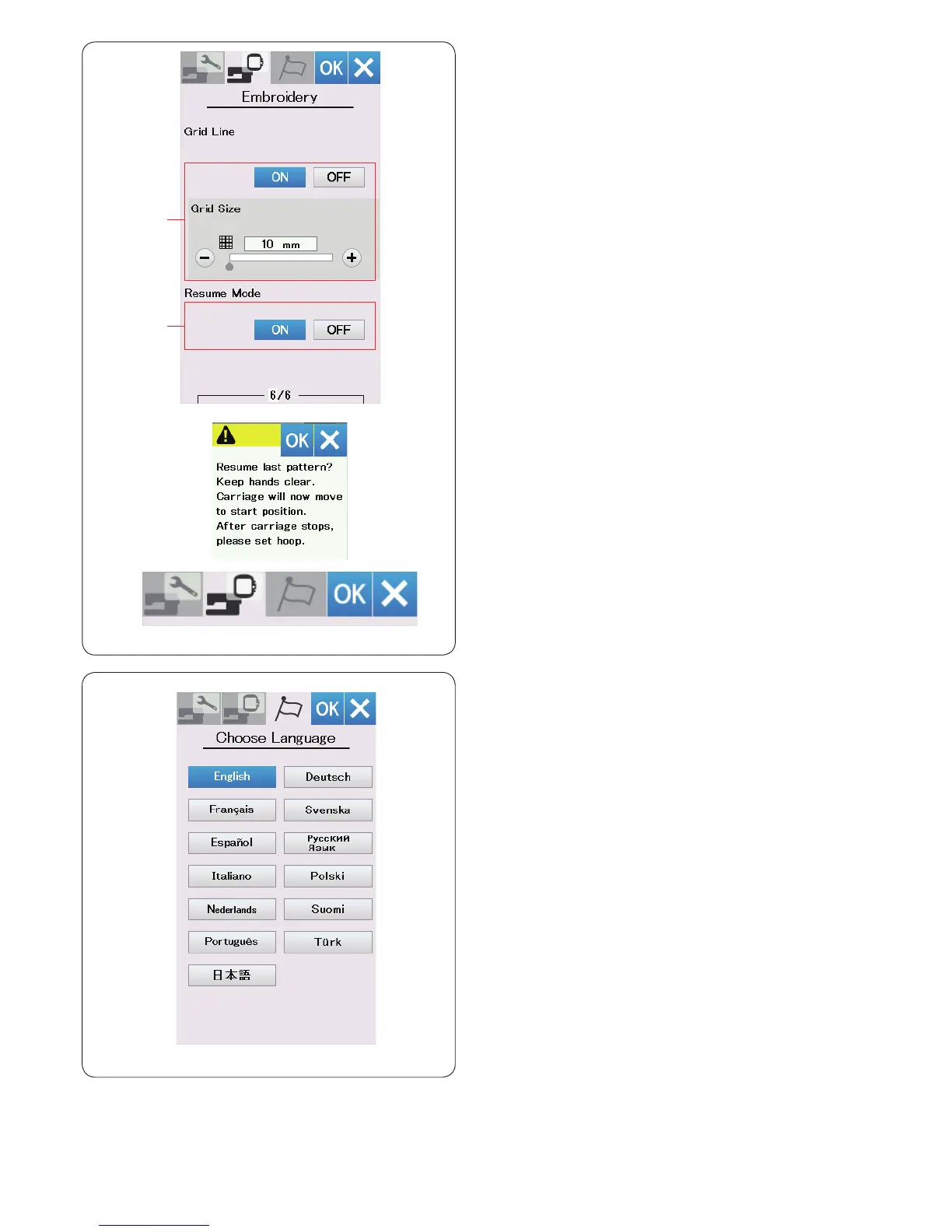 When Resume Mode is turned on, the last pattern sewn