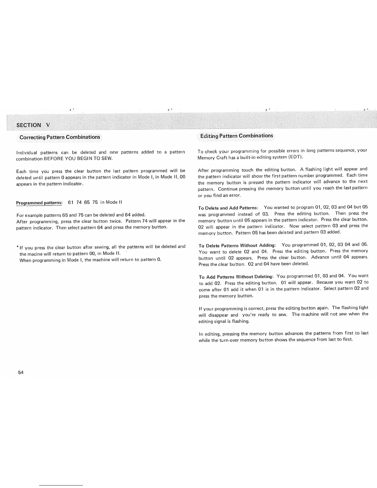 Janome Memory Craft 5500 - Correcting Pattern Combinations; Editing Pattern Combinations