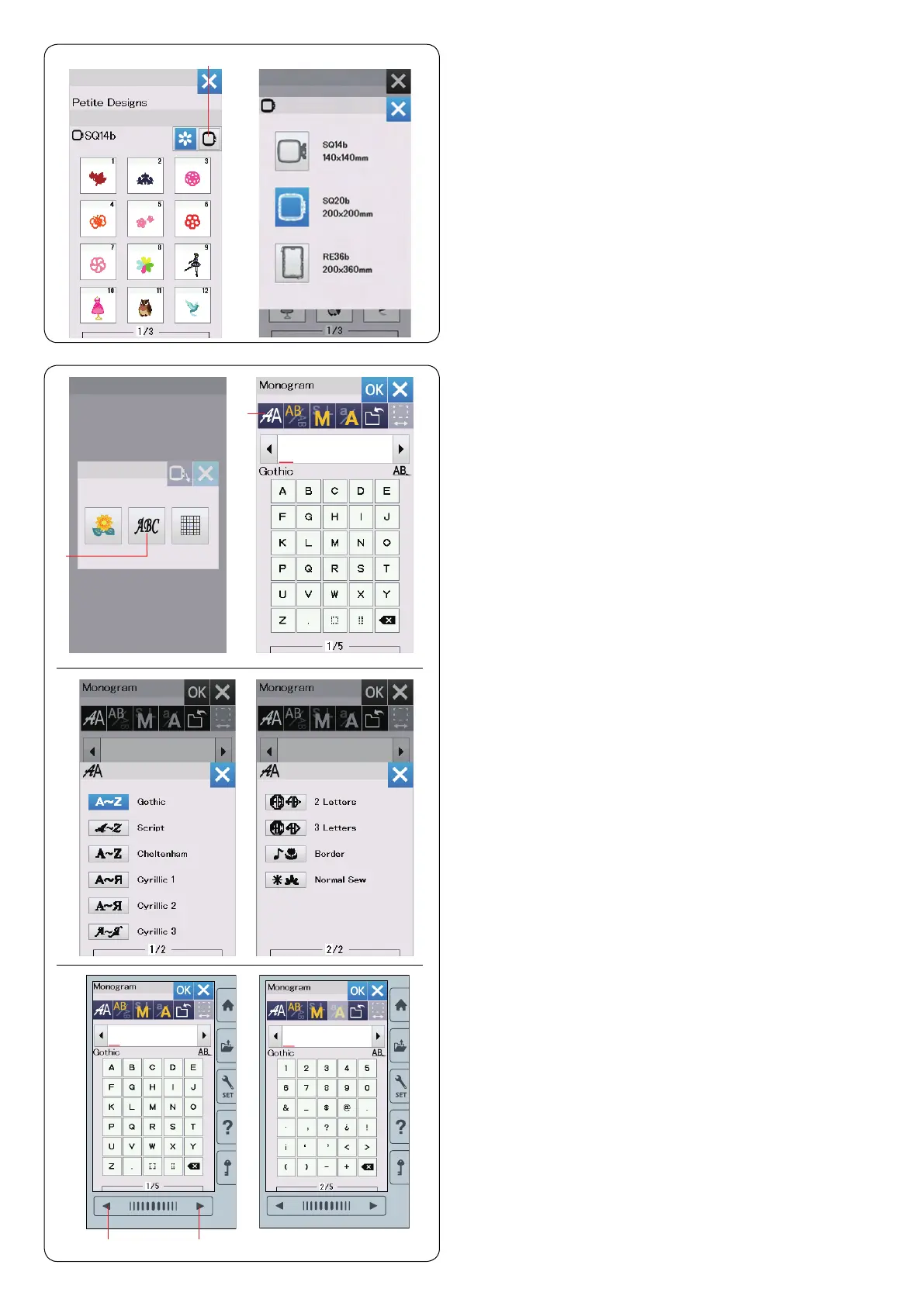 Press the icon key of the desired font and the monogram