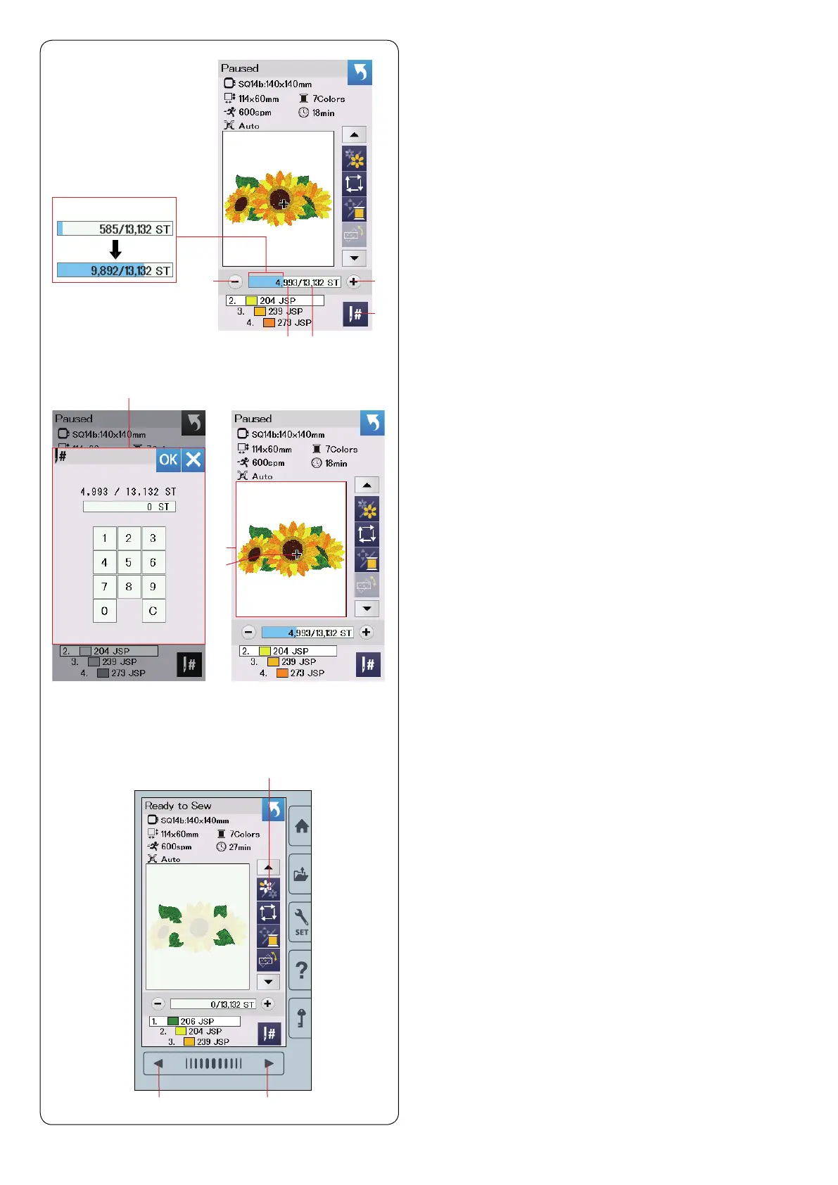 stitch count increases, and indicates the progress of