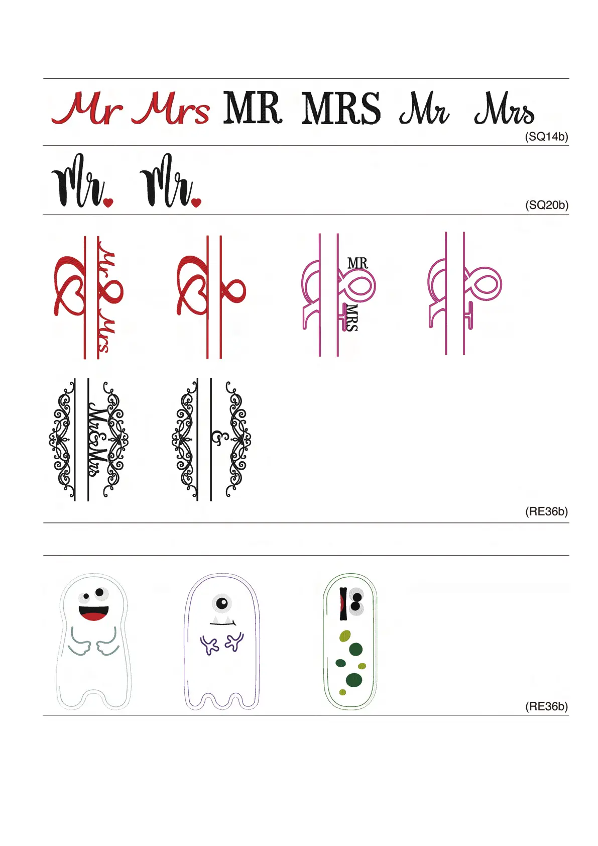 Pattern images are not to scale.