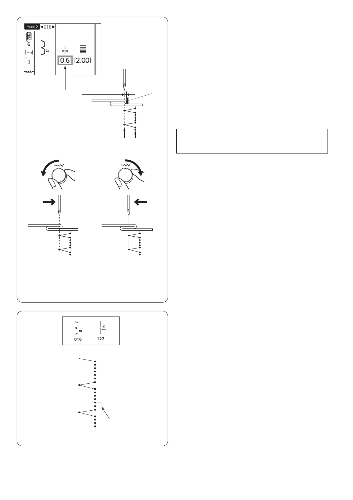 The stitch width of patterns 018 and 019 cannot be