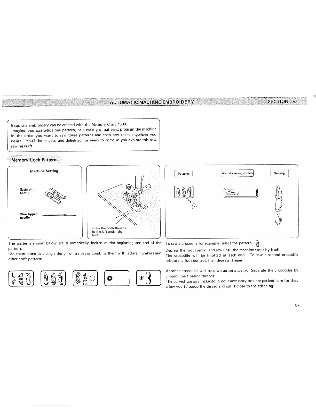 Janome memory craft 7500 - SECTION VI AUTOMATIC MACHINE EMBROIDERY; Memory Lock Patterns