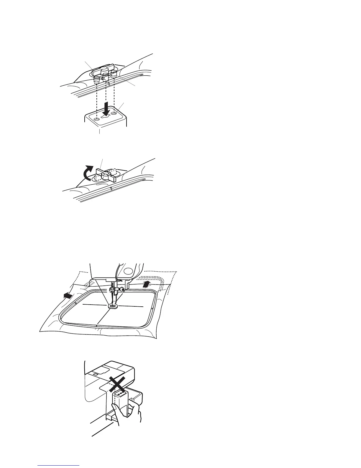Attach the hoop by fitting the pins into the carriage