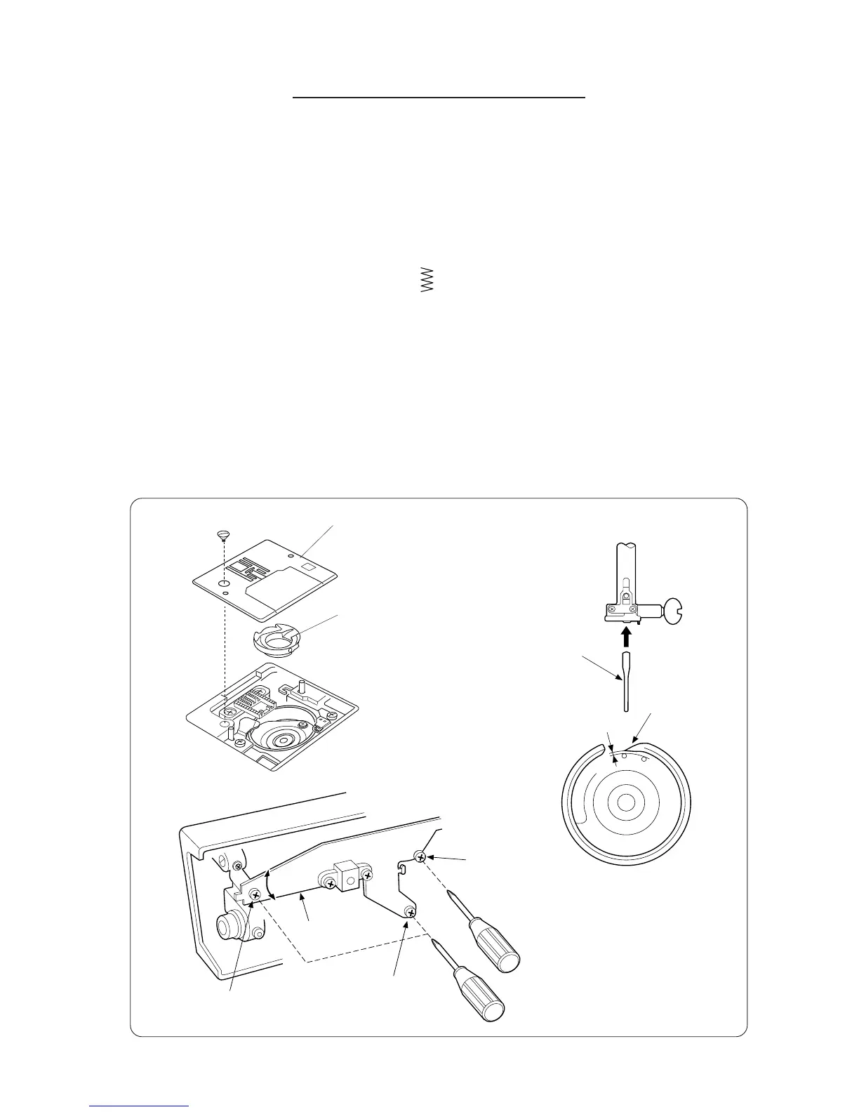 1. Remove the needle plate, bobbin holder, and bed cover (see page 3), and replace the needle with the test pin.