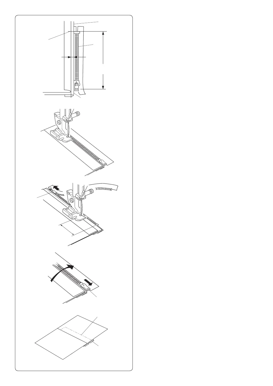 x Place zipper teeth next to margin edge and