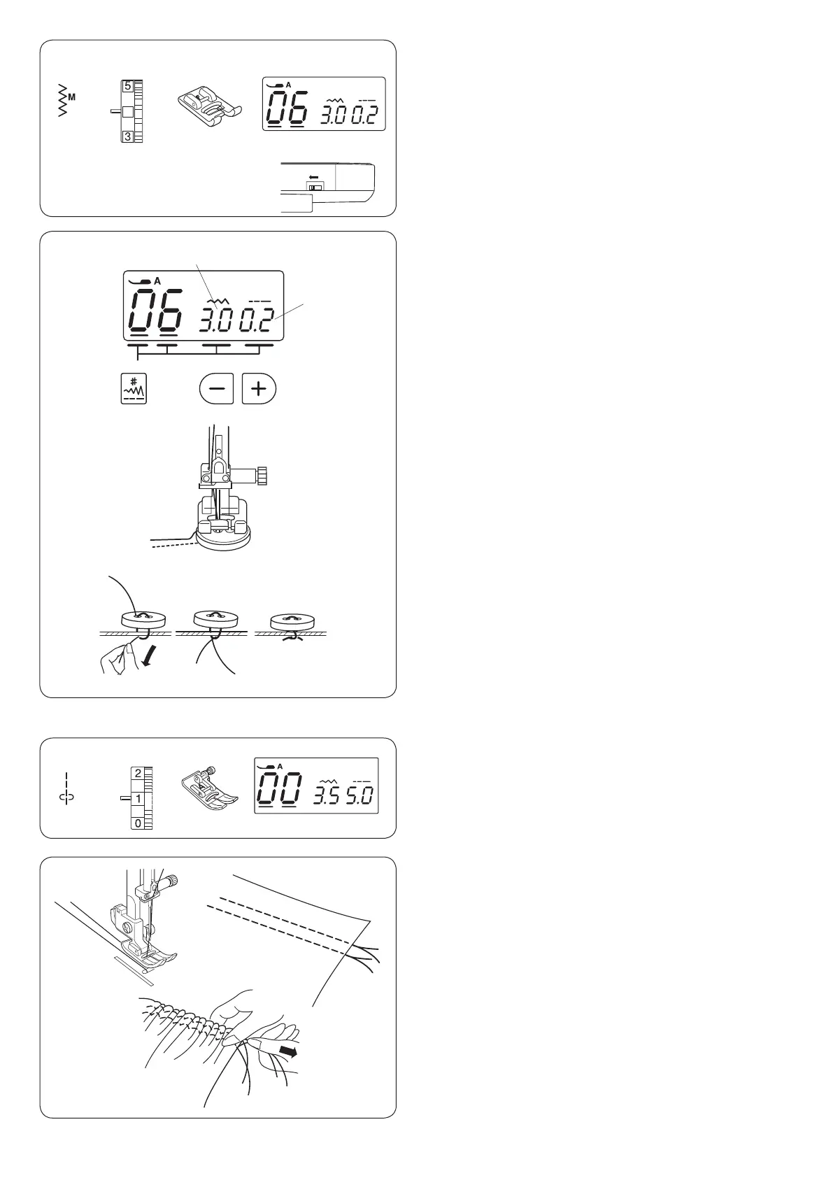 Loosen the thread tension to “1” and increase the stitch