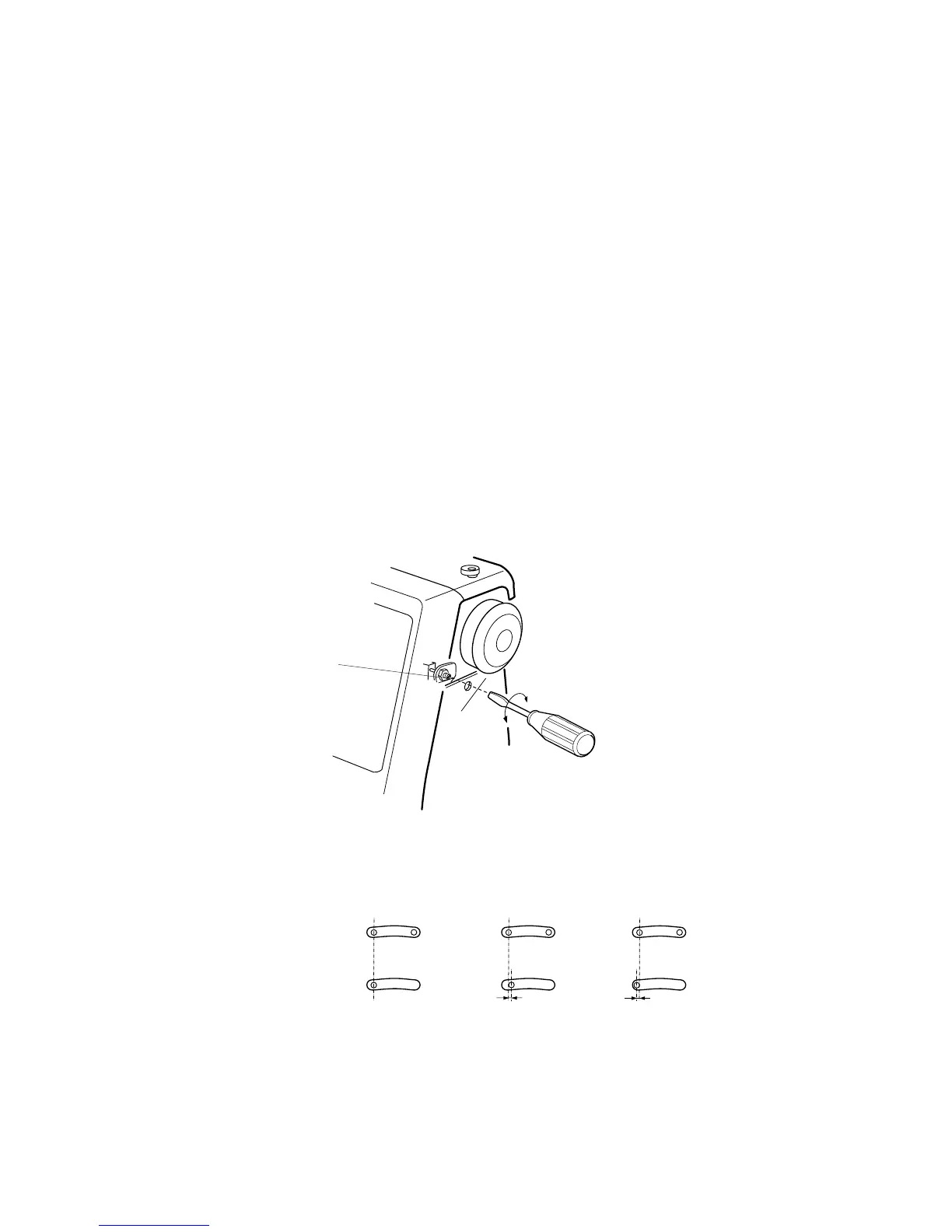 IF THE RESULT LOOKS LIKE (B) SEE BELOW, TURN THE ADJUSTING SCREW IN DIRECTION (C).