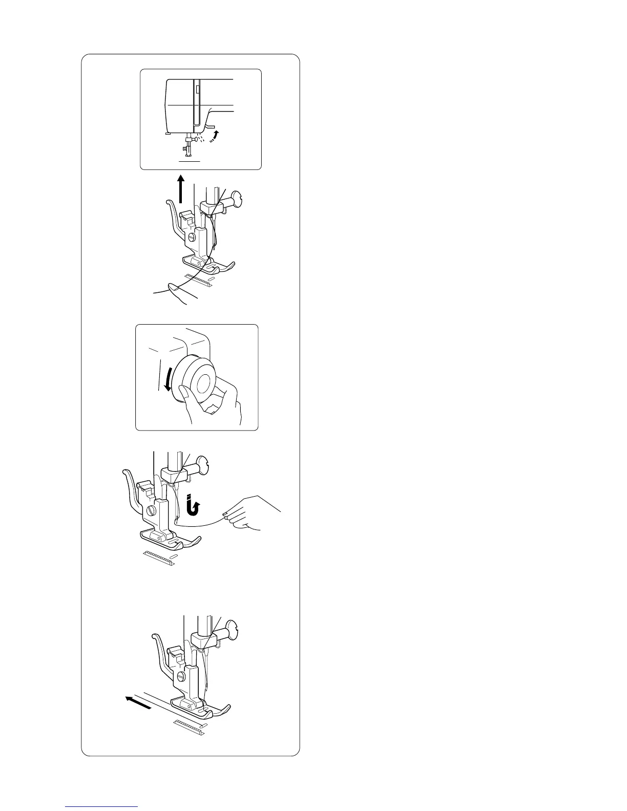 z Raise the presser foot and hold the needle thread