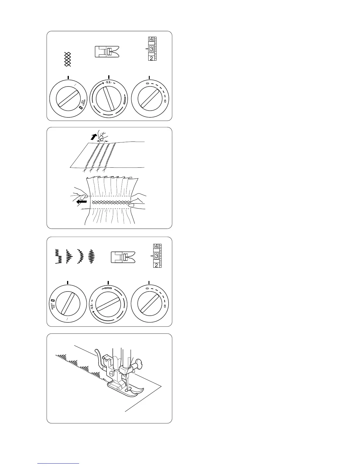 With the stitch length at “ 4 ”, sew straight stitching lines