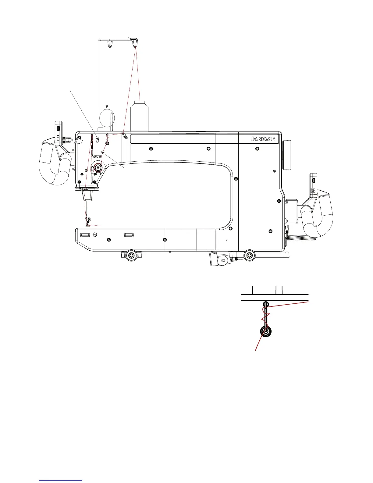 Note: The purpose of the three-hole thread guide B is