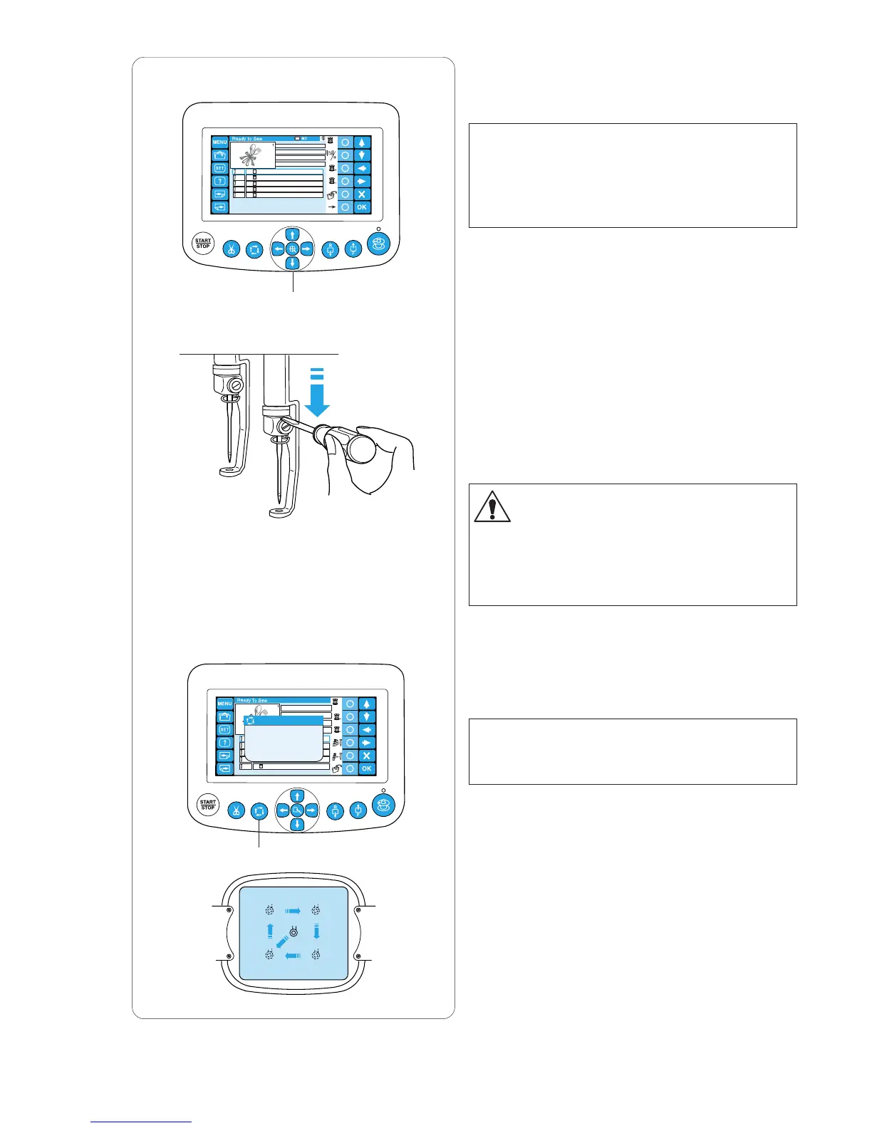 touch panel shows the Ready to sew window.