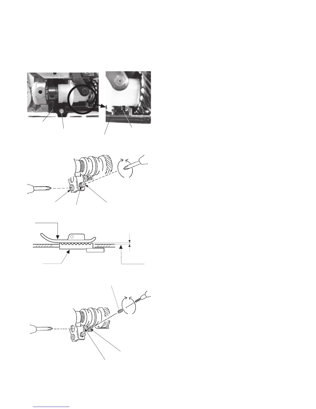 When the foot pressure dial is at “7” and the presser foot A is lowered, the highest position of the feed dog should be 0.80
