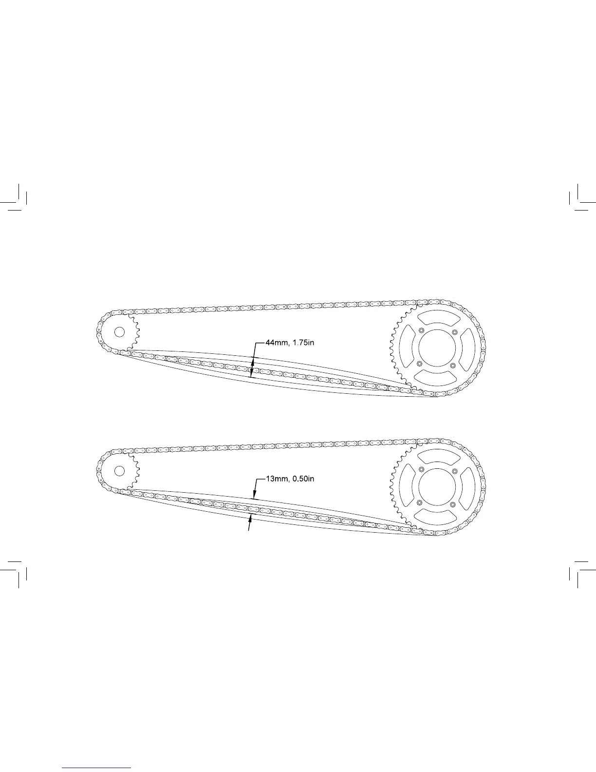 Chain play measured from the top of the chain should be 44mm (1.125 in.)