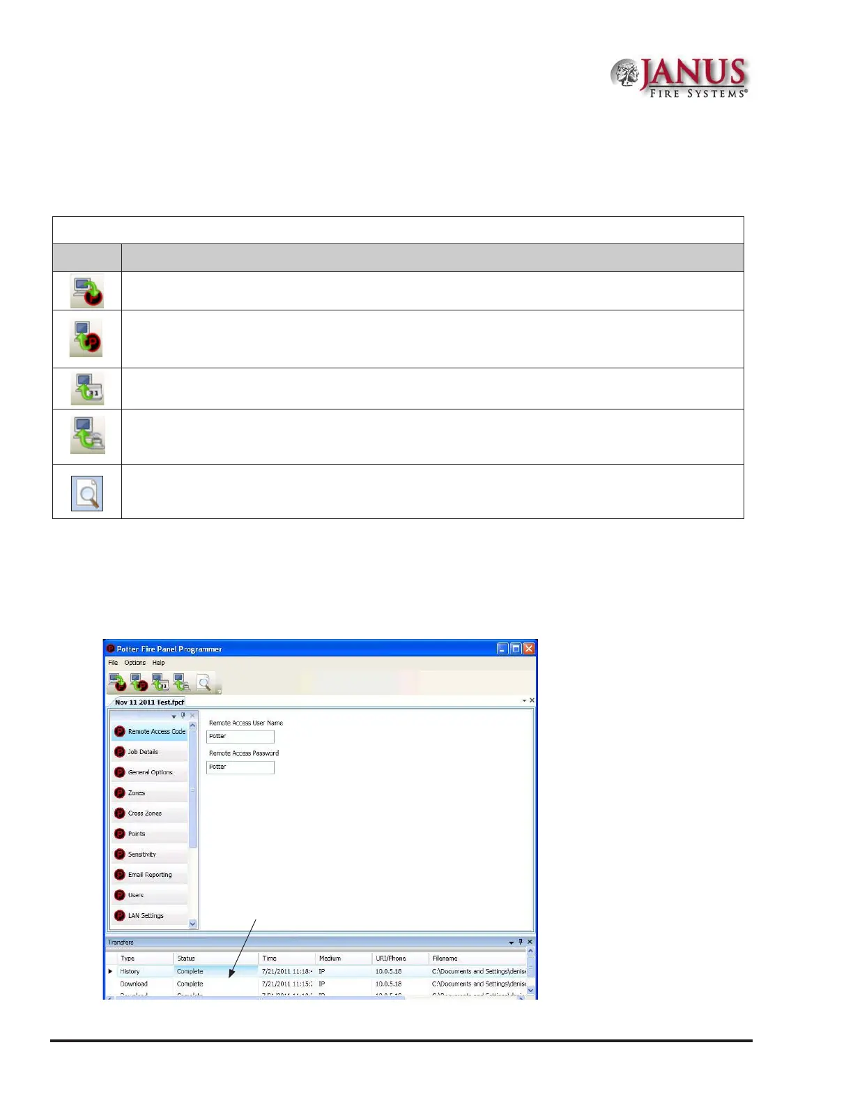 Figure 43. Example of Programming Window Showing Transfer Icons and Transfer Section