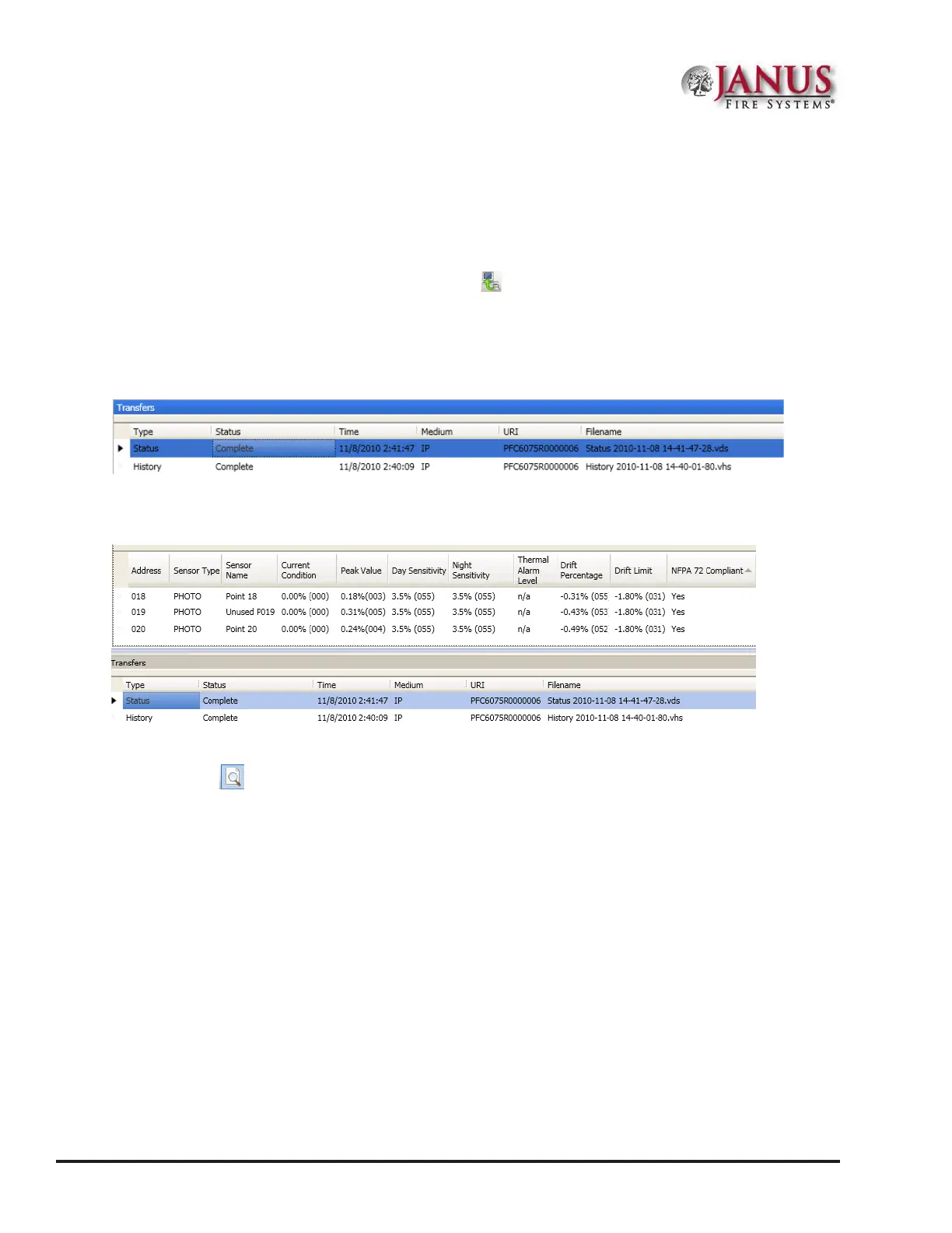 e Upload Detector Status File to Computer icon allows you to create reports showing sensor sensitivity related settings.