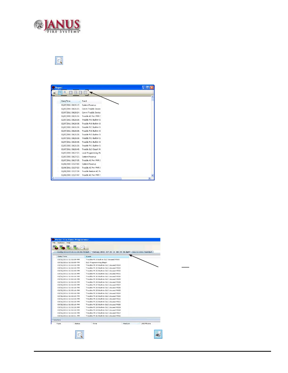 e Print icon allows you to print History and Detector Status reports. Double-click the History or Status le