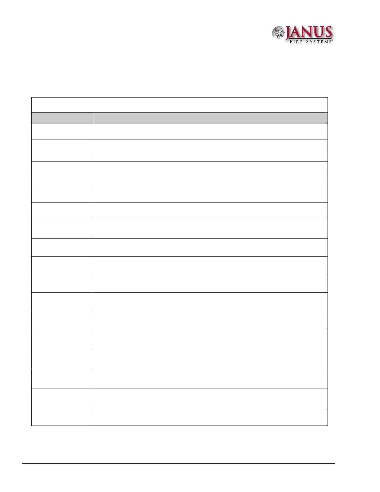 Table 12: Programming Menu Overview