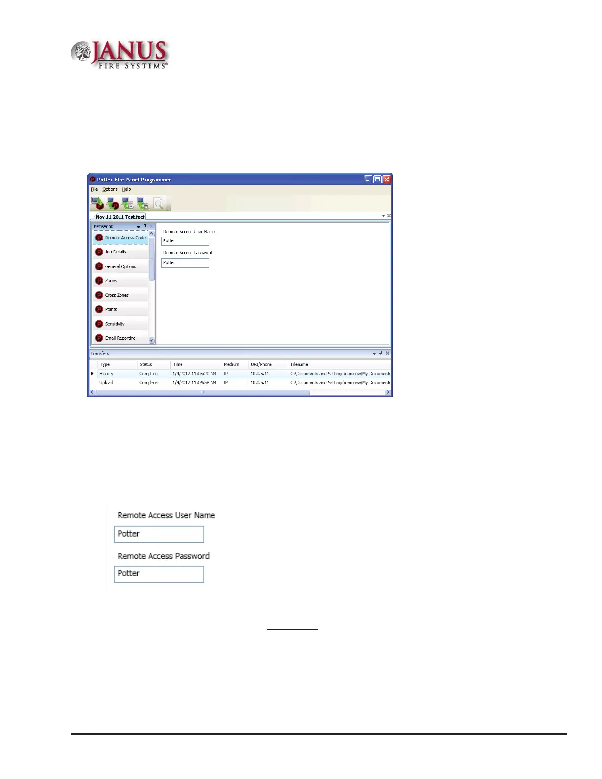 e default user name and password is “Potter” as shown below; they can be changed to ensure that only authorized