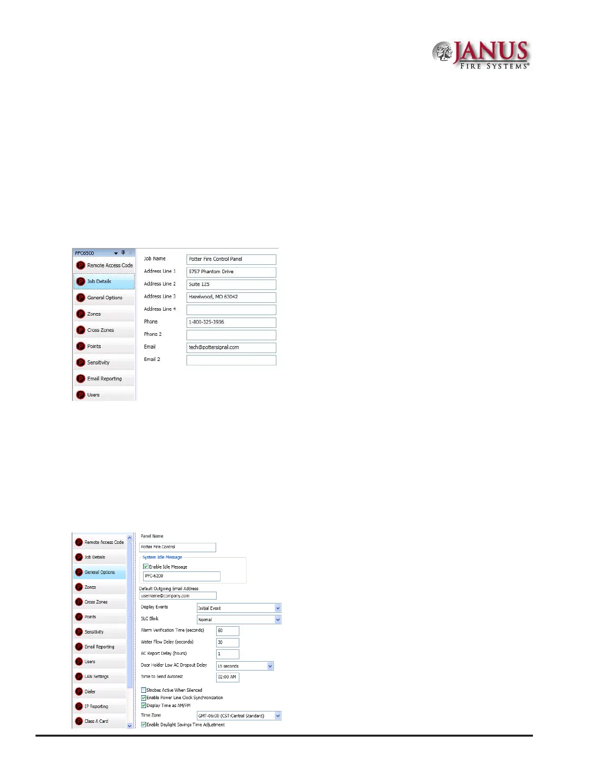 Site specic information, such as company name, address and phone numbers may be entered in this window. is