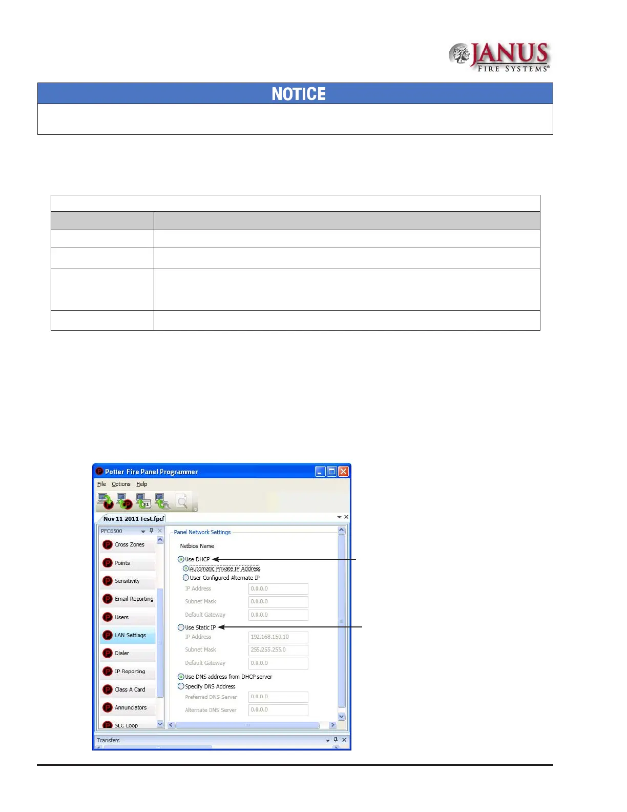 • e installer or the Network Administrator may set the IP address using the software's Static IP function.