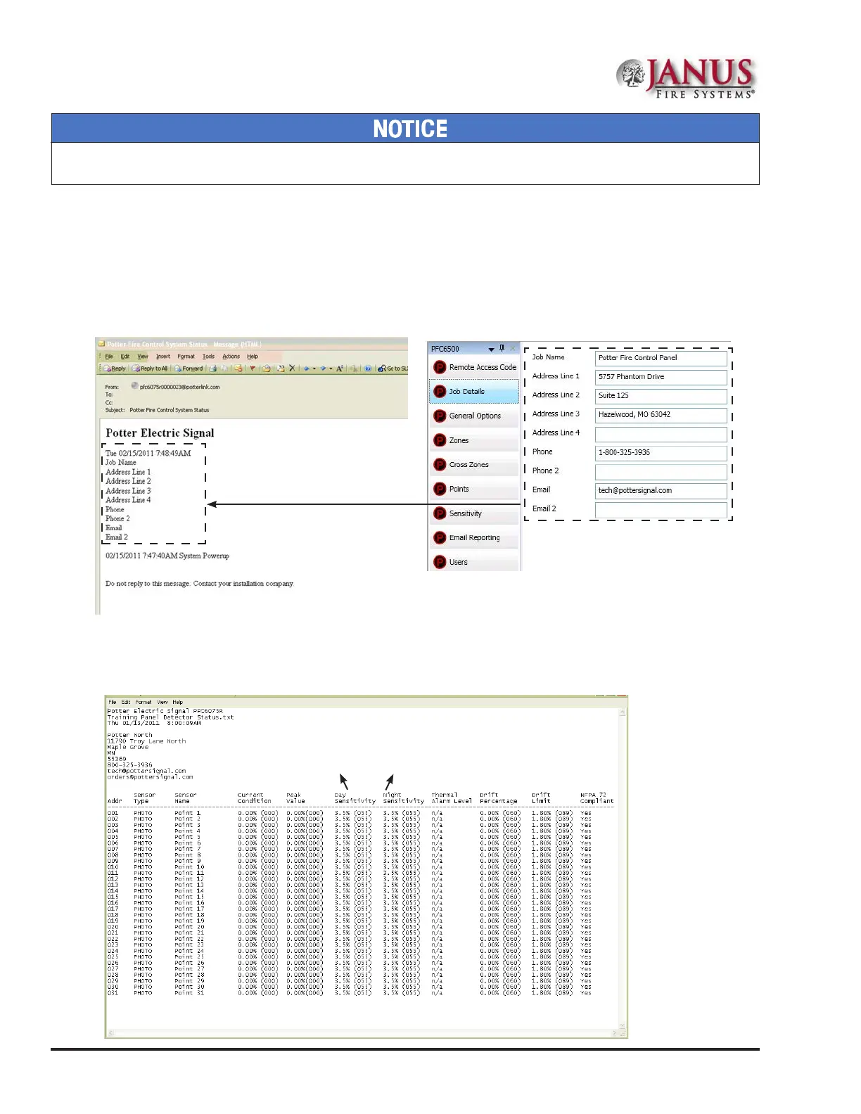 When a history or detector (sensitivity) status e-mail is received it contains two attachments: