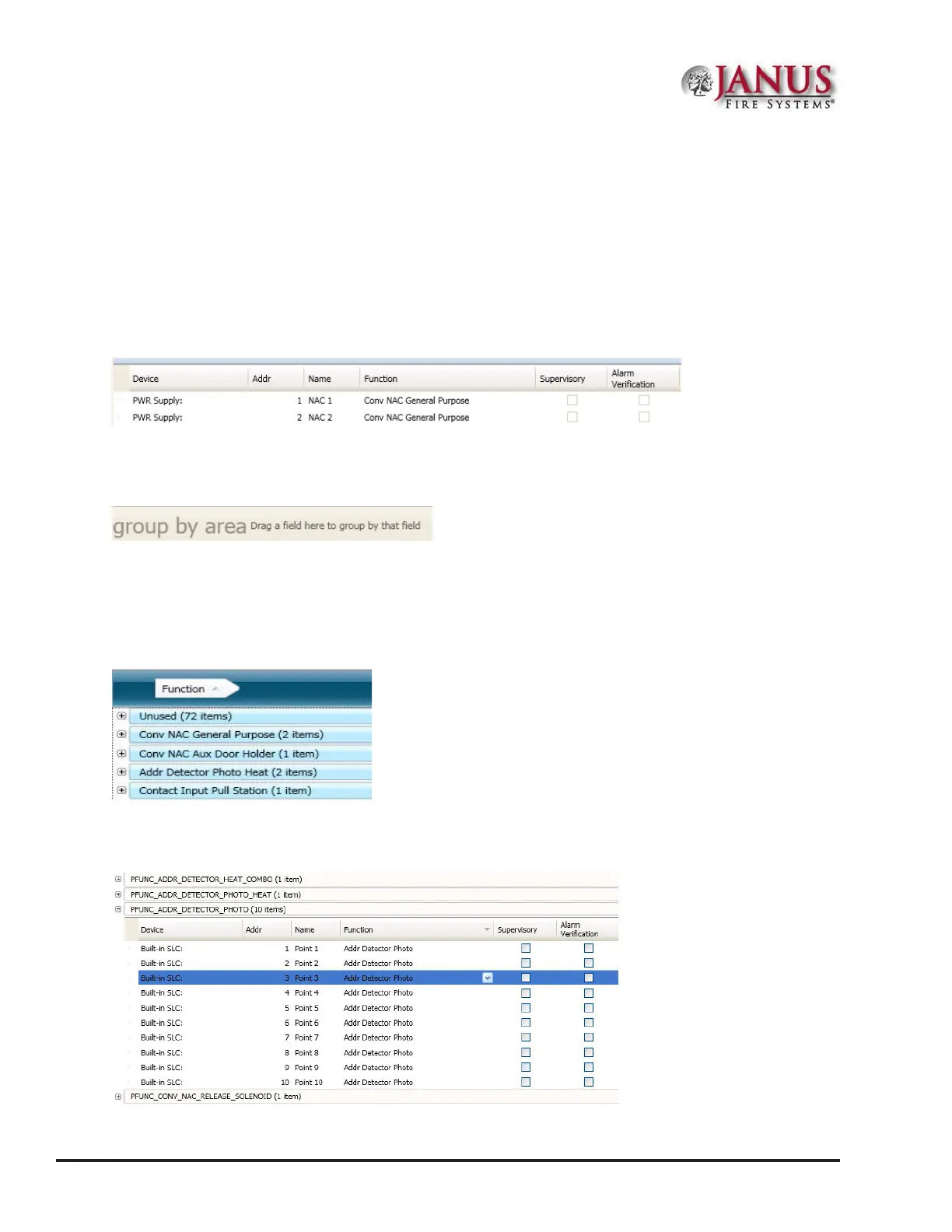 conguring or viewing a large amount of information, such as all devices, zones or remote annunciators. Examples