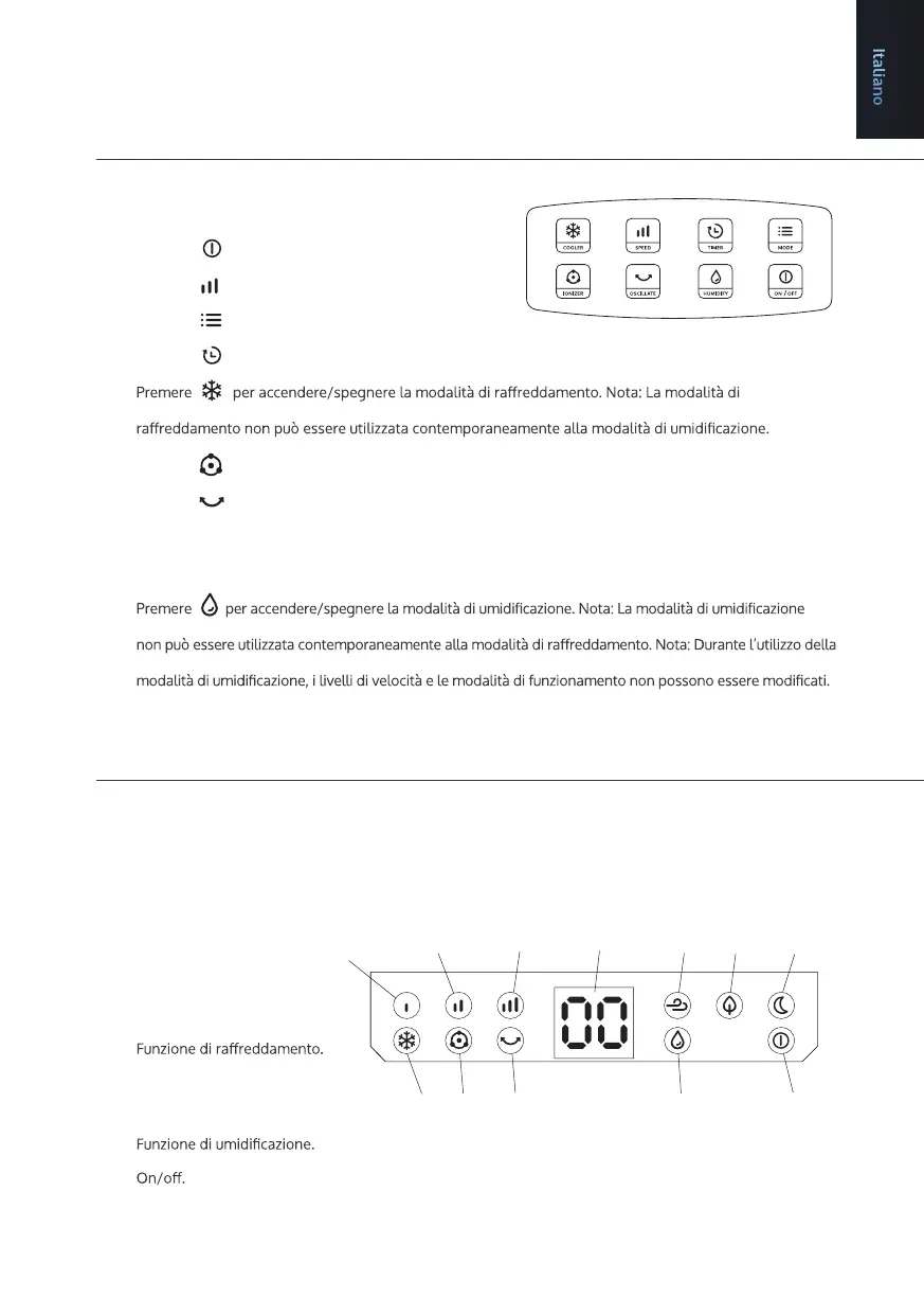 8. Premere per accendere/spegnere la funzione oscillante. Nota: Le strisce di guida dell’aria all’interno