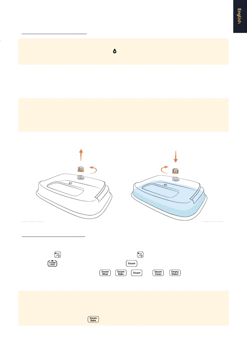 • Only use distilled water. Pure water does not have a negative inuence on the taste of the food.
