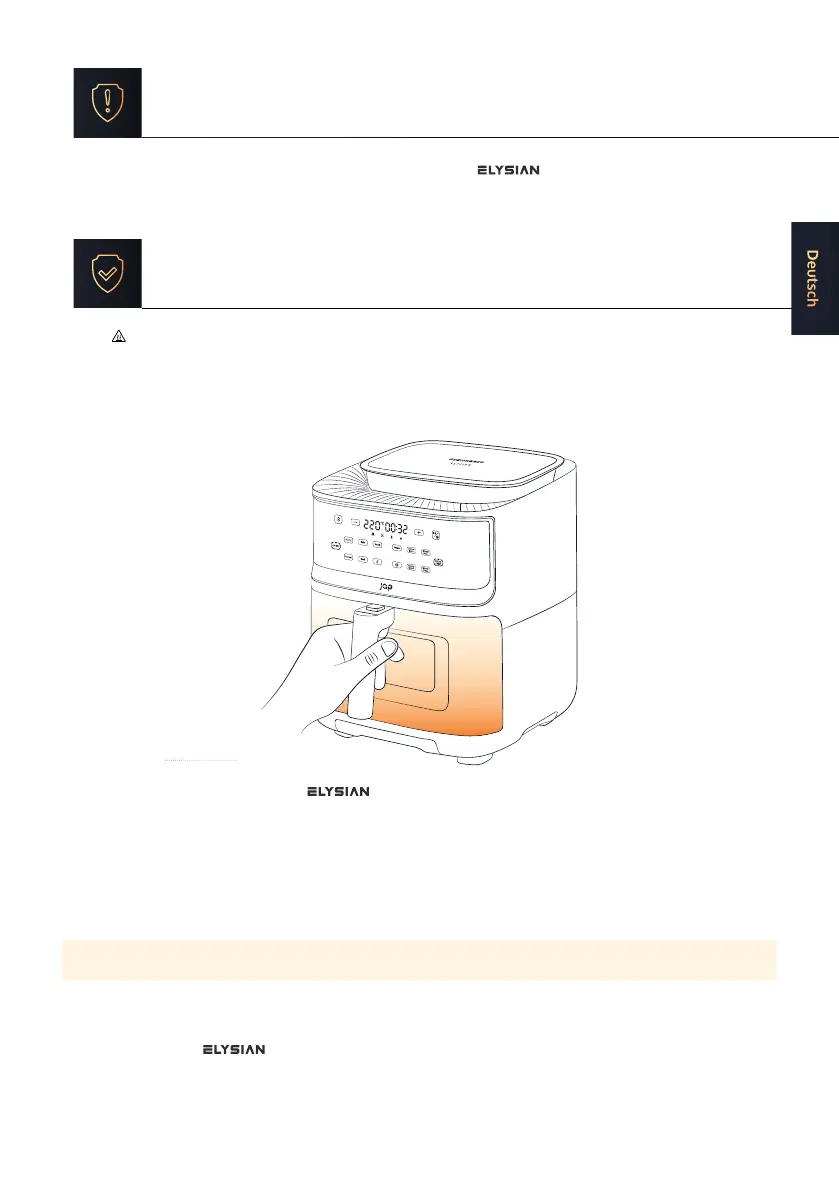 • Während und nach dem Gebrauch kann das Gerät sehr heiß werden. Verwenden Sie das Gerät