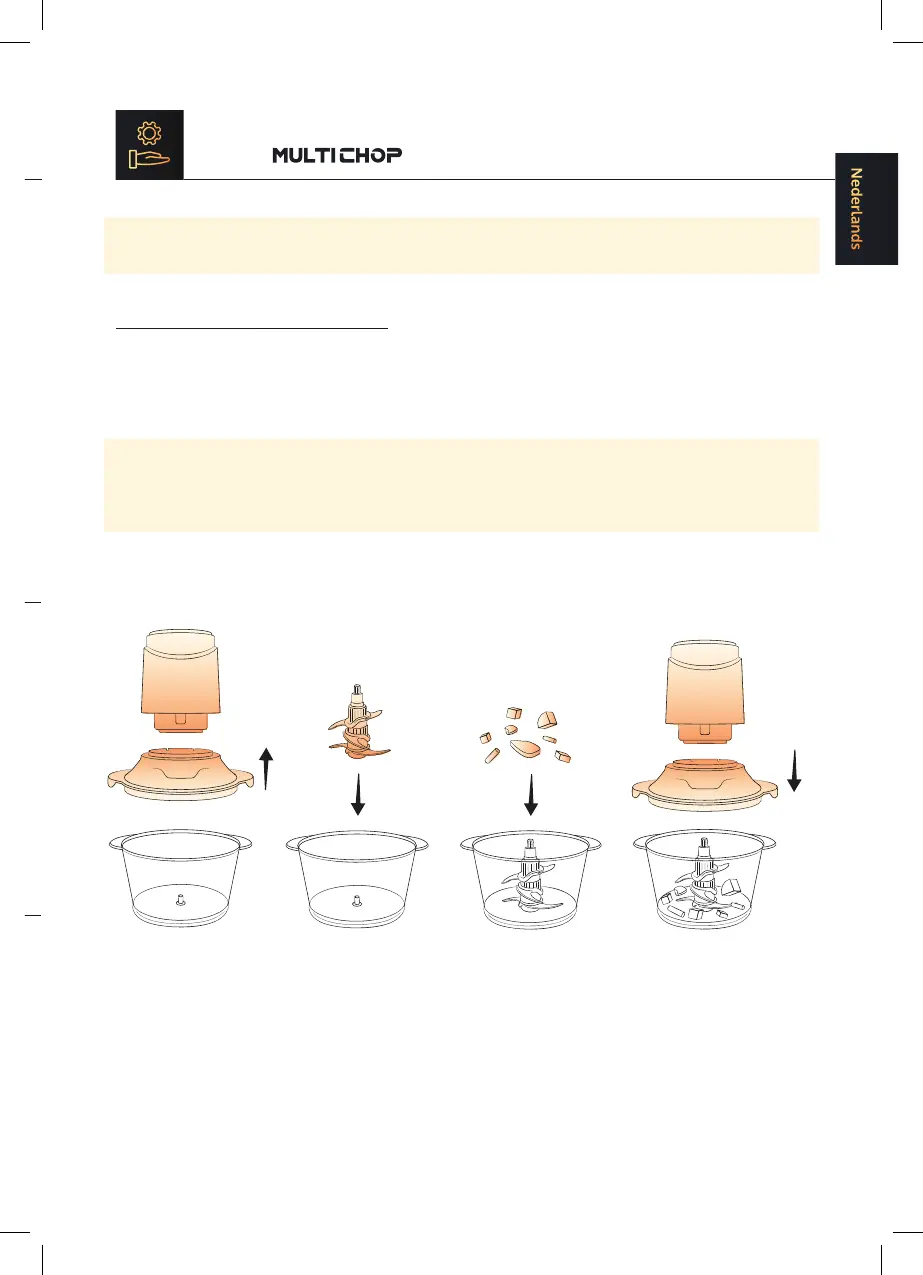 • Verwijder alle oneetbare onderdelen en snijd het voedsel in stukken van 1-2 cm.
