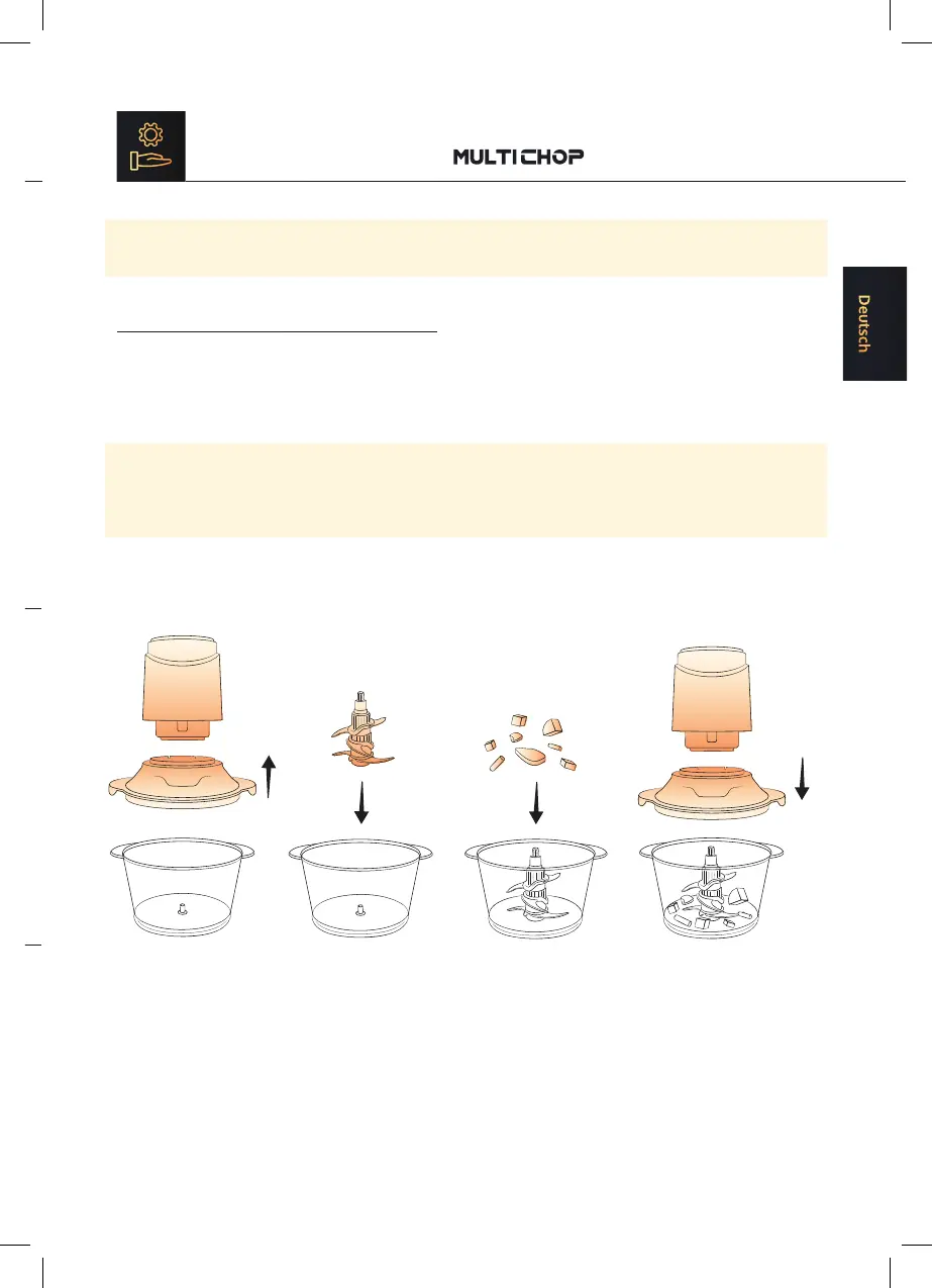 • Entfernen Sie alle nicht essbaren Teile und schneiden Sie die Lebensmittel in 1-2 cm große Stücke.