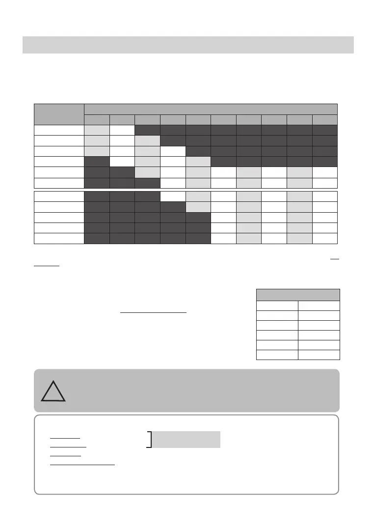 The rates indicated in dark are not recommended during your programming.