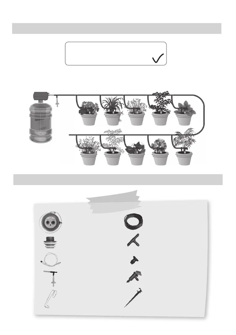 di una bottiglia o di un serbatoio e di distribuirla via dei tubi e dei gocciolatori, per l’irrigazione di