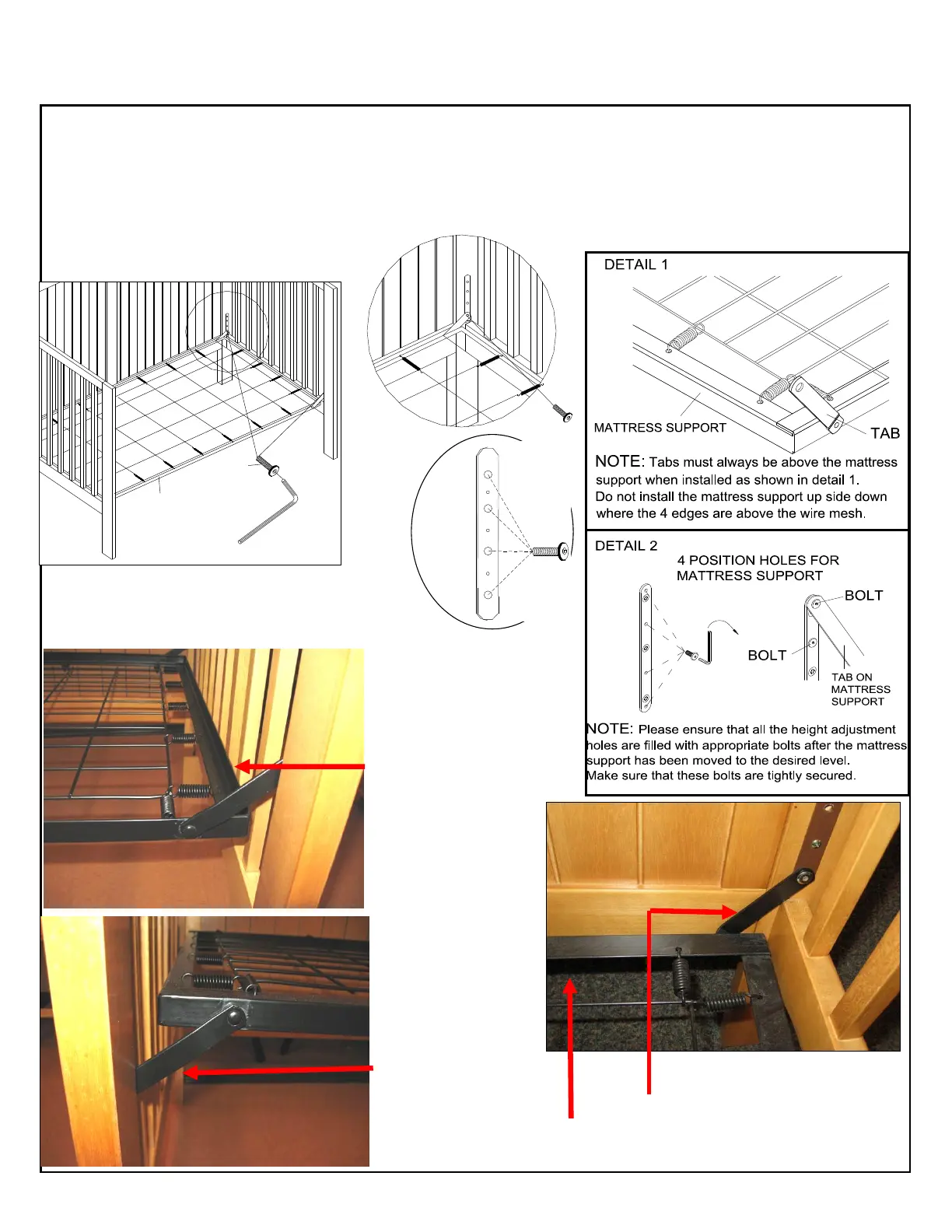 tighten bolts. Refer to details 1 and 2 for direction on how to properly attach the mattress support.