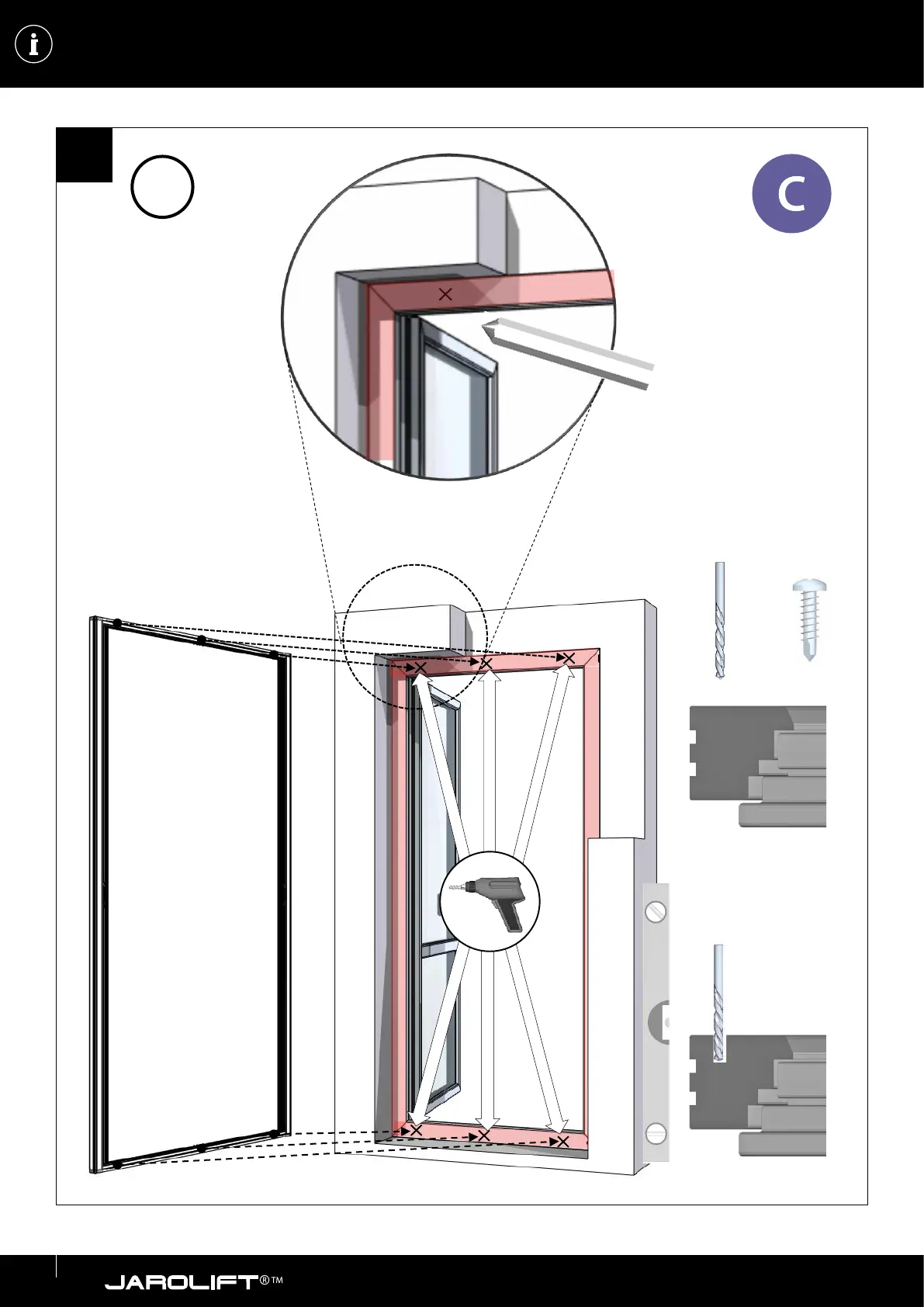 PUERTAS DE DOS PIEZAS / MONTAGGIO: ZANZARIERA A RULLO PER PORTA A DUE ELEMENTI / MONTAGE: TWEEDELIGE DEURROLGORDIJN /