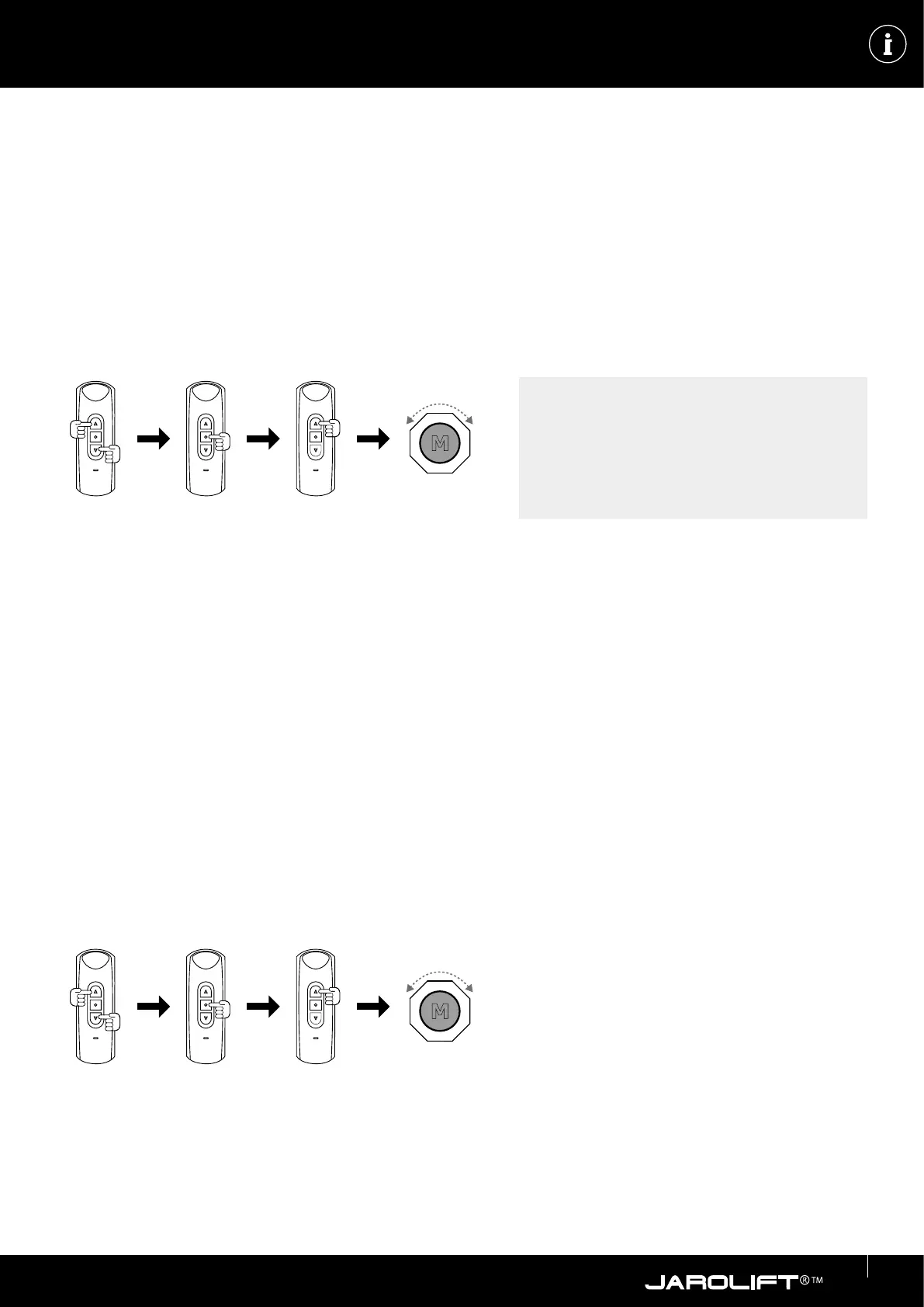 I motori collegati sono controllati solo nché il pulsante su o giù del trasmettitore è premuto o tenuto e si fermano immediata-
