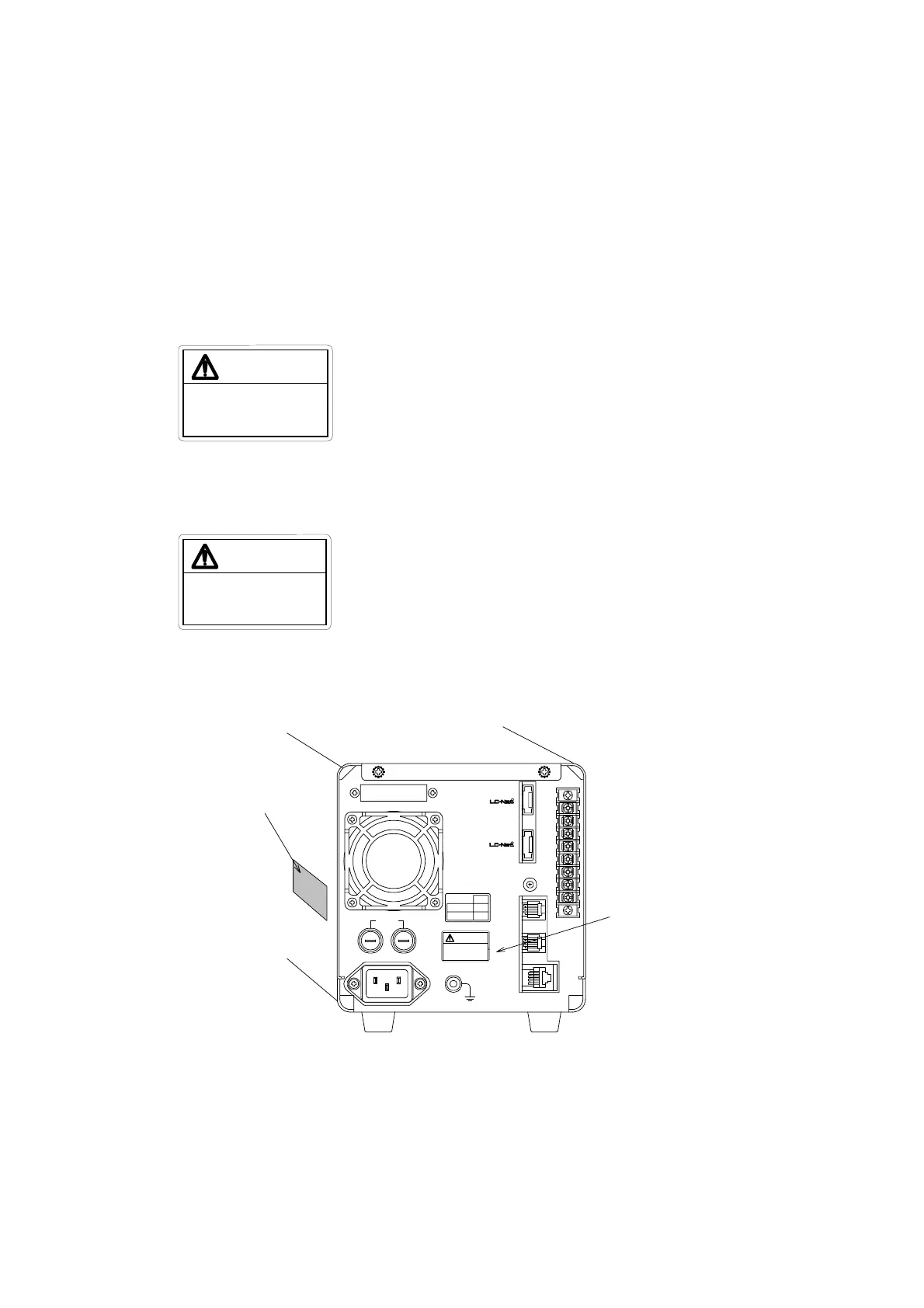 Warning labels are attached at several locations on this instrument. Do not remove,