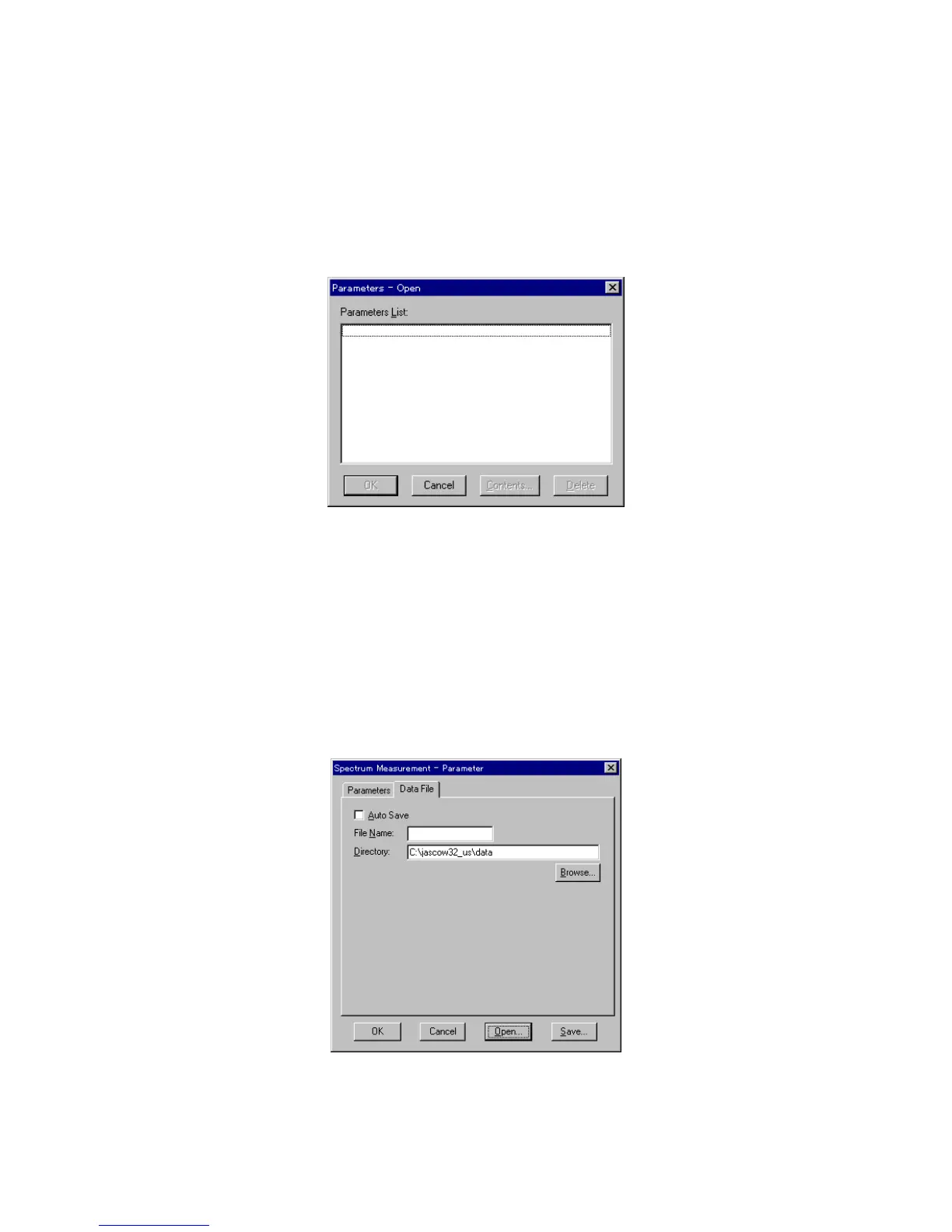 C lick [D ata File] in the [P aram eters] dialog box to display the dialog box show n below .
